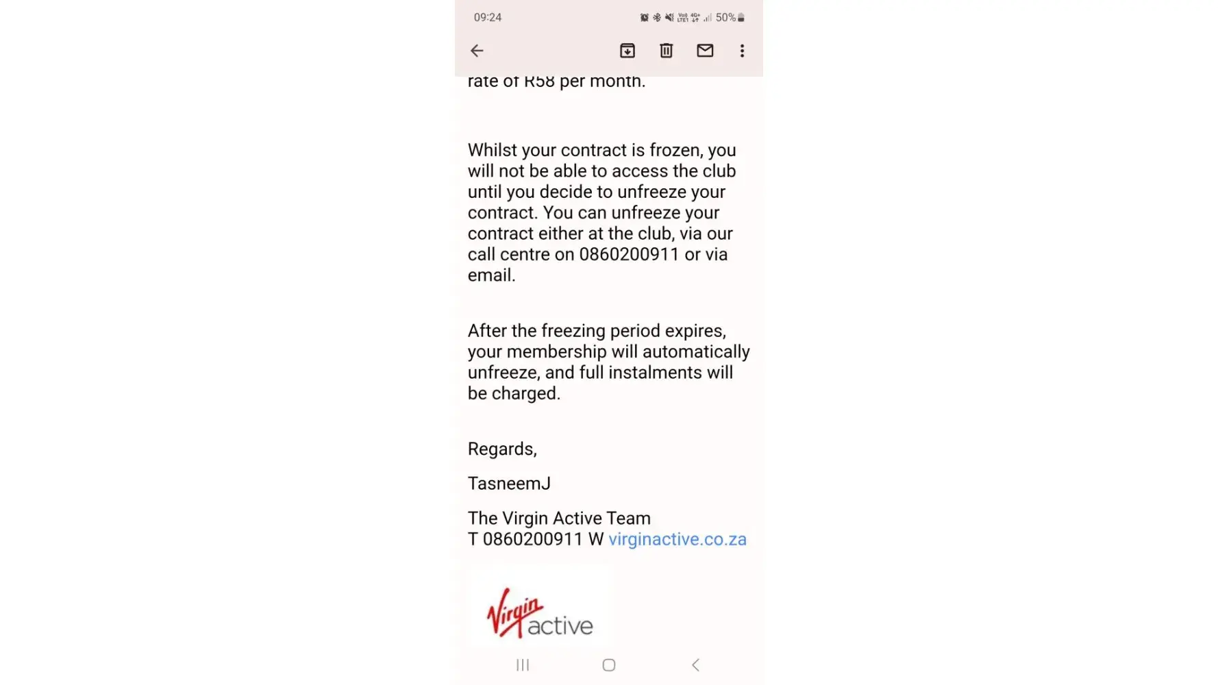 I called Virgin active Maerua mall, got finance email address and attached my correspondence and once again stated that i need to cancel my contract.