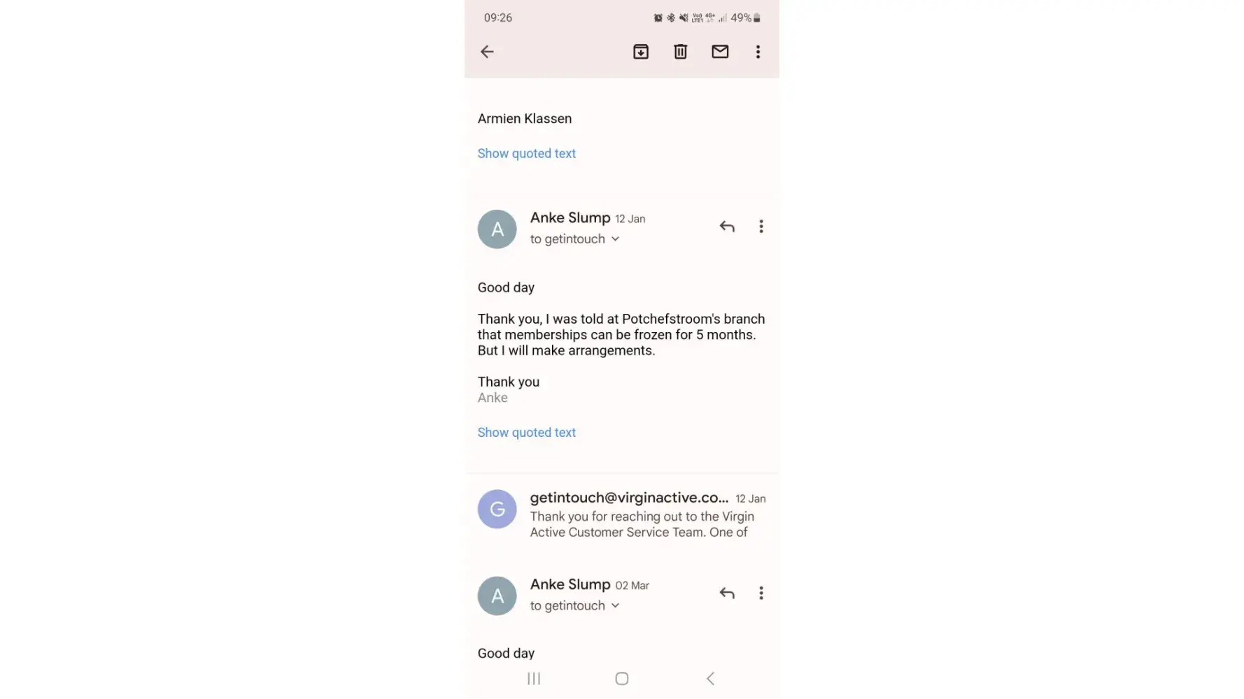 Good day complaining of unlawful and fraud that virgin active is doing to us I have Payed full 3 month money but I haven't used the gym because of I was working far away from my home town.