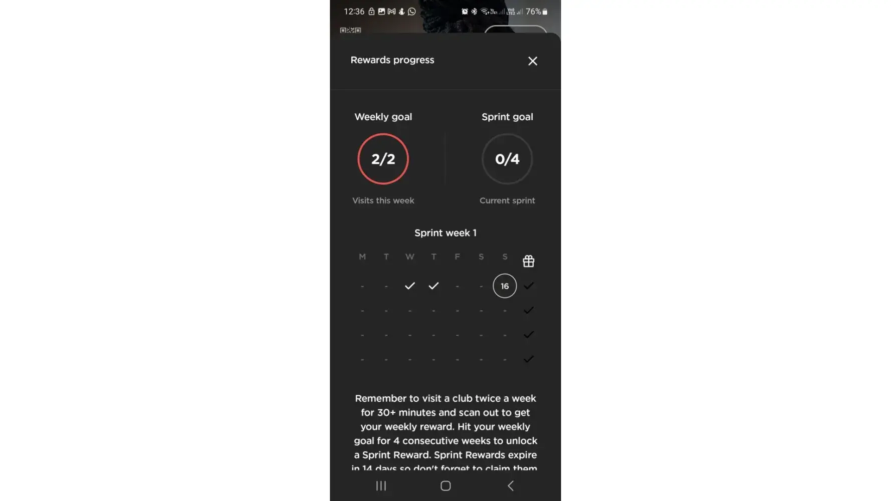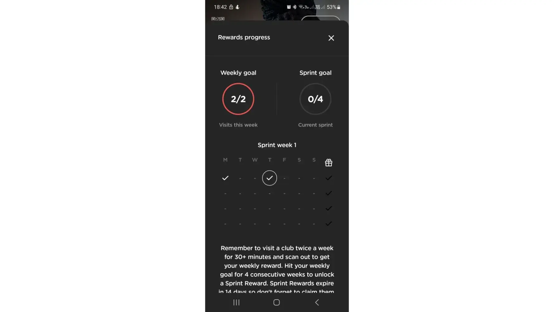 Although I visit the gym at least twice a week the rewards and sprint never update. The sprint always stays on week 1 with 0/4 and although I can see my visits 2/2 the weekly reward never updates.