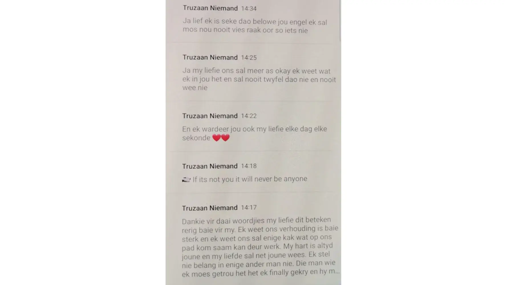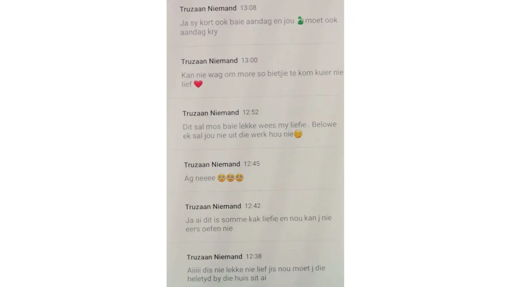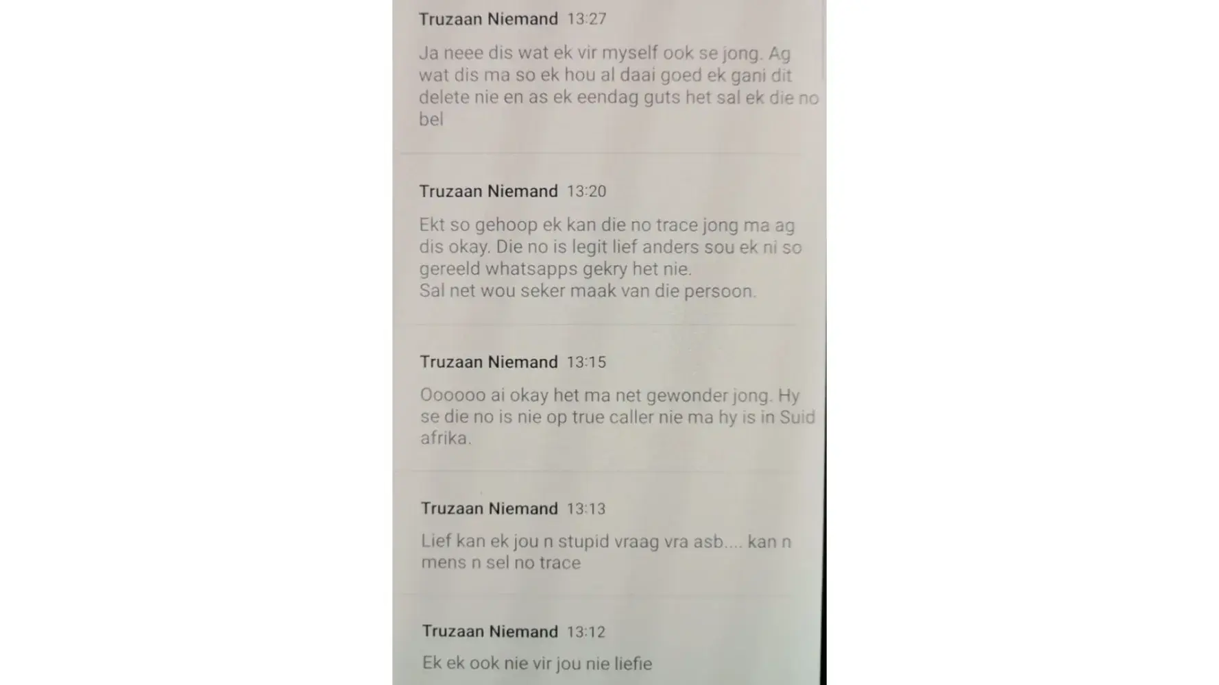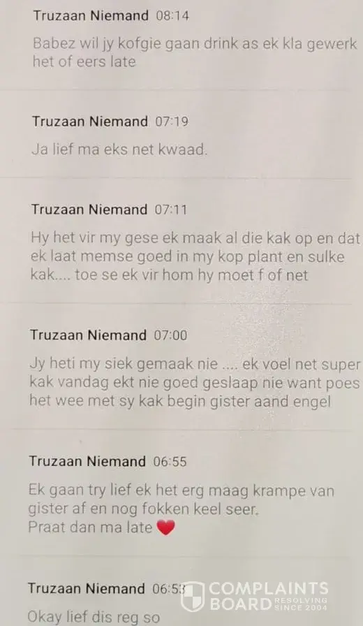 In the meantime, we continue phoning Emanuel, and he keeps promising it is rectified and will send us the proof. He never kept to his promise, and so the game continued. I send him SMS, and he makes promises.