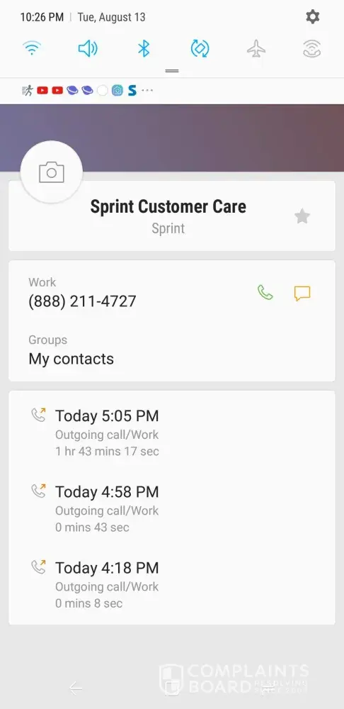 Photos attached show the call history to Virgin Mobile. Added the screenshot of the Sprint call which was used for 3 way calling. Shows 1 hour 43 minutes total. I would have included a copy of the 3 hour chat session with Sprint but that file is too big to upload. Talk about a waste of time.