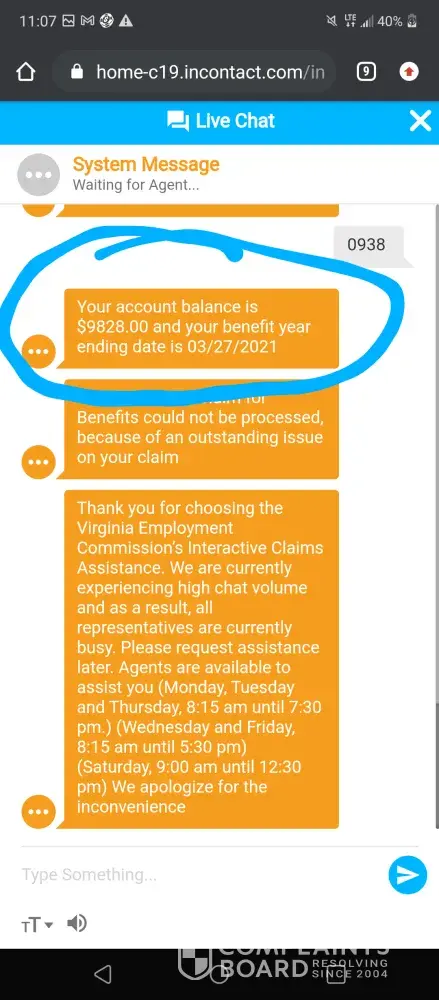 I cannot reach anyone on the customer service phone line, live chat or email. I have been waiting and trying to obtain info about my claim since September. As well as at least 80, 000 of us have been denied or waiting for deputy decisions on claims. They had since March to get this right and now it is a week before Christmas and still nothing. They need to release our benefits immediately! People are suffering losing utilities, homes because of the VEC's poor handling of REAL people's claims. A class action lawsuit should be effected against the VEC and lawmakers that have done nothing more than write letters to intervine and help struggling Virginians.
