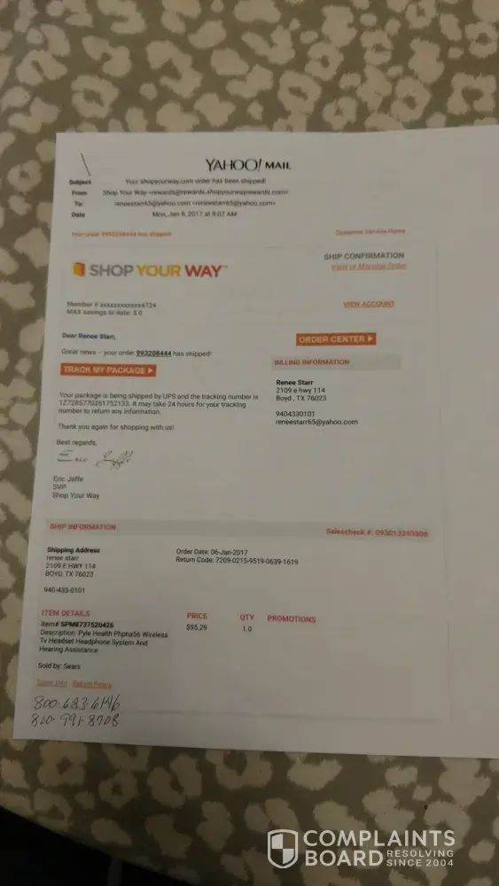 My order was with shop your way. [protected]