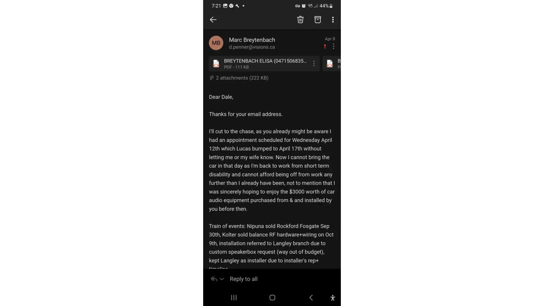 I have never in my entire adult life had suck a horrific customer journey/experience of my life please be warned. Do not buy any of their electronic goods anywhere. My brand new RD 1000 amp bass knob port doesn't work yet they charged me full price for my entire setup and still had the nerve to add insurance to that same amp. And refuse to swap it out for a brand new one on the spot right after it has been purchased because the manager doesn't even have the decency to come to the front desk and have a chat with me to see how we can get this whole mess sorted out. So I emailed the regional manager and still nothing. Not a single reply. Unbelievable! A journey which has span since Sept 2021 until now got JL fitted, bass knob installed no bass but speakers wasn't playing until I pulled the bass knob out. Oh we tested it with every tool we had. It wasn't working tough luck we refuse to swop it you sit with what you have. Plus we will now charge you again just to wait another 3 months + because we gave you a faulty amp to begin with. And we'll charge you insurance that is no good if the product is already faulty. From the start. I still haven't managed to get that regional manager to even acknowledge I exist as a $5000 odd price tag paying customer who is now so fed up he is going to tell the world about you and then you can see for yourselves how many likes for disliking your company for every single moral it's breaking in business by going about it in such a disgusting way. You call that treating the customer fairly? Really. You still have the nerve to charge me for insurance when I categorically told you not to but you did it anyway. Unbelievable. You best fix this situation before I hit the BBB. And so what if you're not registered, you don't deserve to be on there. You're disgusting in the way you do business. What if I was an old lady that couldn't type to save my life... what would you do then... still rip her off. Yeah that's what I thought Lucac - supposed store manager from Visions Langly BC. He has been the whole reason behind my anger and frustration. Selling me and installing faulty goods. Unethical business practice. So is sneaking in a warrantee you specifically didn't ask for yet bill your credit card company because he can. Really Lucas? No you cannot simply do that there is no statute of limitations on what the public will do to you. They will shame you for what you have done to a innocent consumer all the way from South Africa where the currency is 14 times weaker. Shame on you for taking advantage of someone who is generally voice less in this world. But I told you in no uncertain terms what I was going to do and here I'm doing it. Now fix immediately as I'm only getting started. First of many complaints. And they will haunt you until your brand rots down to the core because you are an effixiation of the human kind. Your business morals and treatment of a hard working person in a greedy money grabbing stealing world. You stole from my credit card company. Visa you can go sue the man now. I've got all the receipts on hard copy for you. That man with the sheepish grin behind the counter with the name of Lucas even had the nerve to print out the invoice with that I asked him for thinking I wouldn't notice that sneaky addition. Not once but twice I asked them not to add insurance. First Nipuna from Port Coquitlam then Lucas from Langley. I buy on credit to work hard to pay it back but you just think it's ok to steal from customers. That is a crime punishable by sanction. Which is what every single person is going to do with you after they take the time to read my rant because you are the killer of my sanity. And the thief that gets away with it every day because not enough people complain while you sit back and rape us as consumers and laugh at us as we walk away. Like you did Lucas. I so hope you get to read this review when you swindle the next person at your store you're a pig of epic proportions that deserves to be in jail for what you have done for me. I hope you suffer a long agonizing death in pain like I am from my chronic pancreatitus. And then get a double hernia to add insult to injury just to rub it in up your n9strils until it hurts even further. So Visa and Mastercard there is your thief please go collect your money. I'll happily provide every single one of the receipts, plus a copy of my original email to Mr Regional manager hiding in your office like a little boy stroking his manager's huge ego probably with a fact commission check lined with all ghost stolen dollars from the credit and debit cards out there. Here is a guy that is fuming. I've spoken, pleaded and literally went blue in the face, I almost had s stroke thanks to you. I'm coming for your brand. The one it takes millions of dollars to advertise. May this be a HUGE WARNING DO NOT BUY ANY ELECTRONIC GOODS FROM THIS CHAIN. THEY STEAL FROM CREDIT CARD COMPANIES AND CONSUMERS THAT HAVE TO PAY THEM BACK. May the banks sue u!