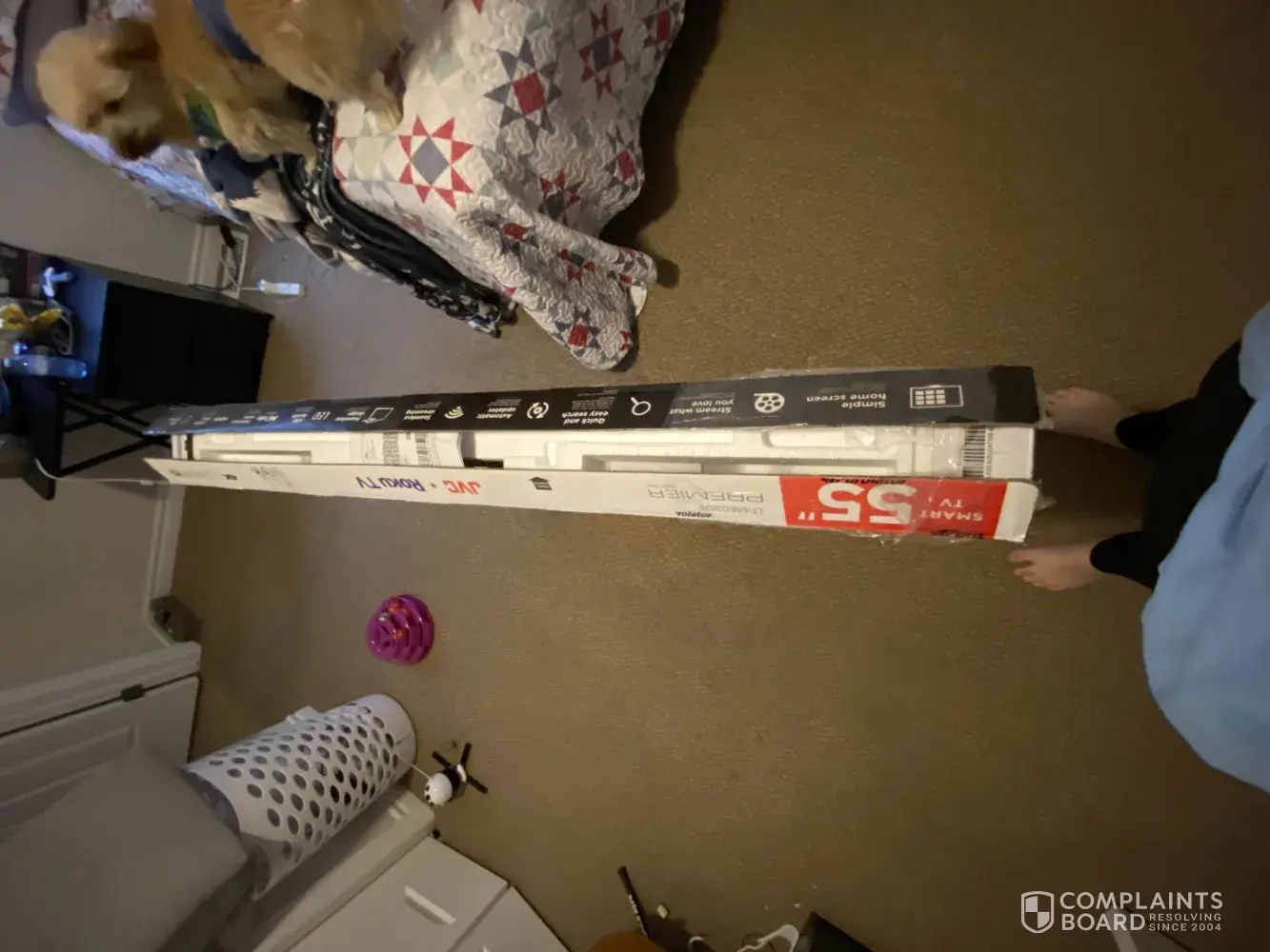 I purchased a Proscan 75" 4K Ultra HD UDR10 webOS on Dec 25th but was sent a defective TV. The TV was returned and after much back and forth with the company. Visions Electronics has sent a replacement TV which was broken on arrival. As I have been in and out of time in the week leading up to Easter I could get to setting up the TV due to its size and need for more than 1 person set up. On setup the TV yesterday, we discovered we had been sent a TV with a broken screen. This might be a calculated attempt to punish me. Please intervene in this matter.