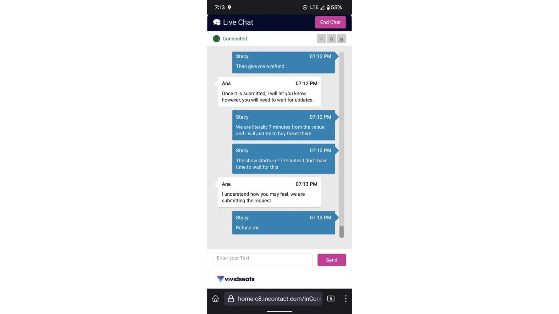 Desired outcome: All of our trips / concerts were refunded except with these people.