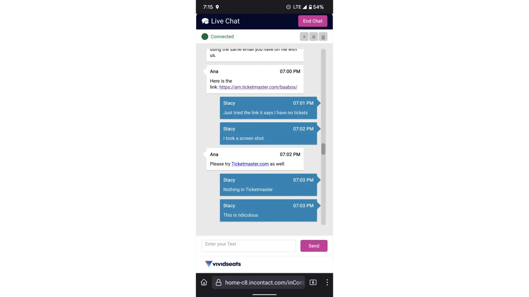 Worst experience I have had buying tickets and it was my first time buying anything from VIVID Seats. I will never purchase anything from here again and nor will I refer any my friends from purchasing anything from VIVID SEATS.