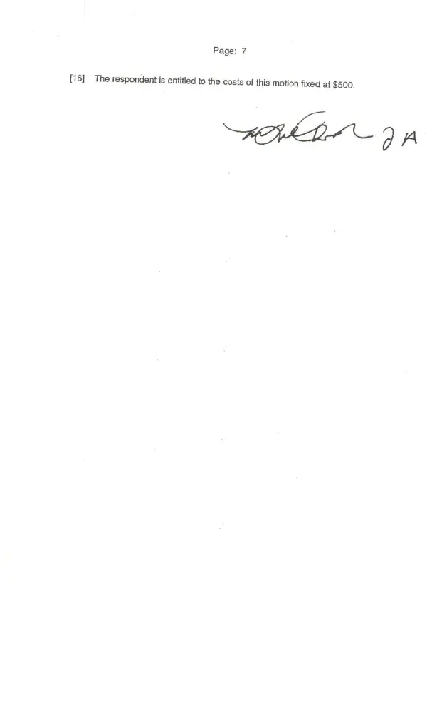 Endorsement from Ontario Court of Appeal: