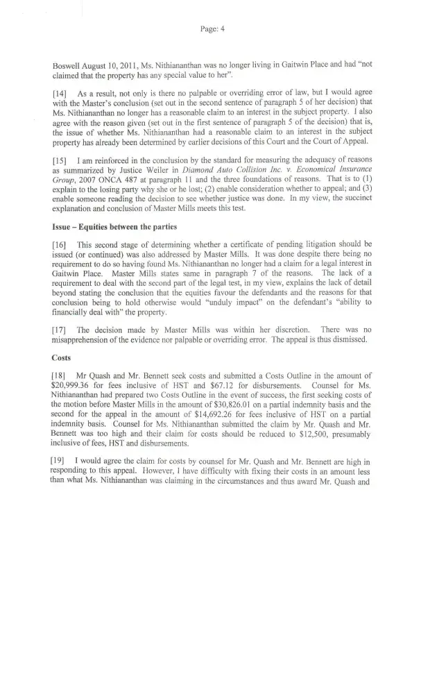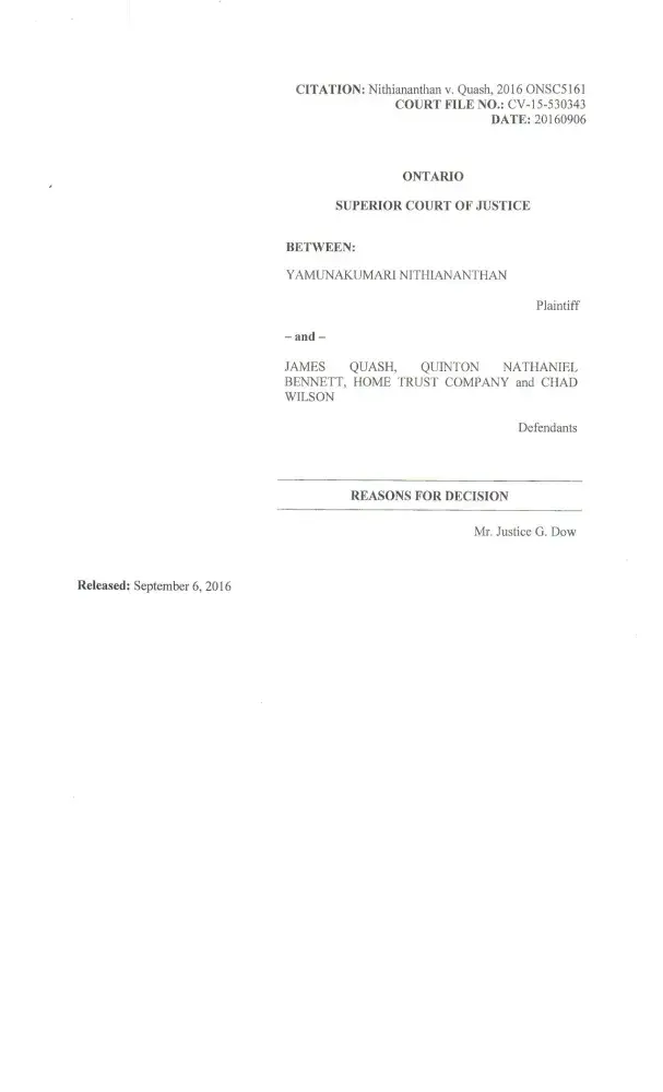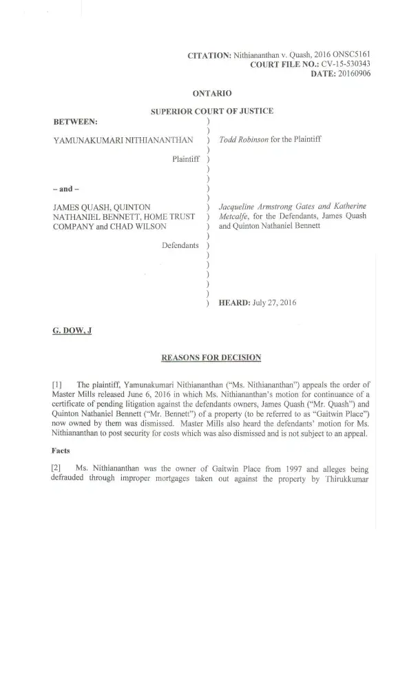 Re: Small Claims Court Trial June 20 2016 held by Deputy Judge Shapiro: Although the Defendants Rohini Sivalingham (Tom Thiru aka Thirukumar Thirunavakarasu's cousin) and her brother Mahalingham Thangeswaran committed perjury at the hearing by making numerous false statements. It was also noted that the Defendants' Paralegal fully supported the false statements from Rohini and Mahalingham. At one point during Rohini's cross-examination, the Plaintiff's lawyer asked her if she had a dog. When Rohini answered that she did, the lawyer then said to her: "Even your dog would not believe you!" Both Defendants were ultimately held liable for $24, 000 and ordered to pay in 30 days as per Judge's endorsement.