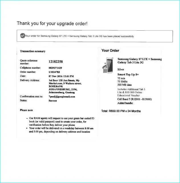 After about a week, I started receiving sms messages demanding payment of my contract and a R100 fine for a returned debit order.