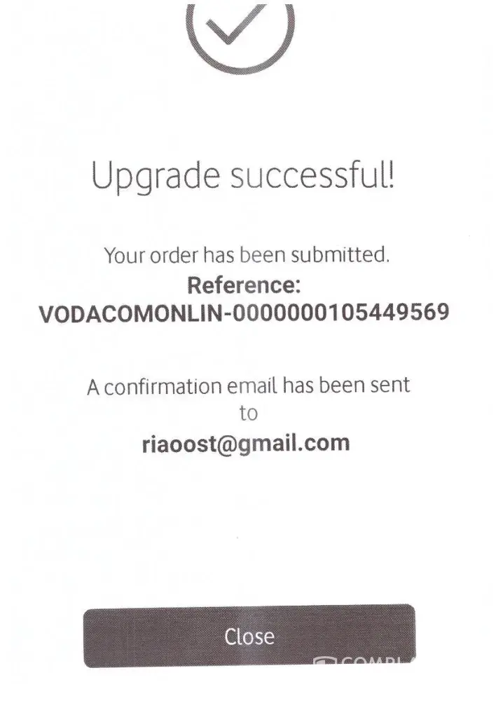 On 18th August I processed an online upgrade application for a Samsung A52 5G phone. I received a "Upgrade Confirmation" email the same day that my new device is on its way. The email confirmed the device, plan type, contract duration, minutes & data allocation, and total cost of R458.00 pm.