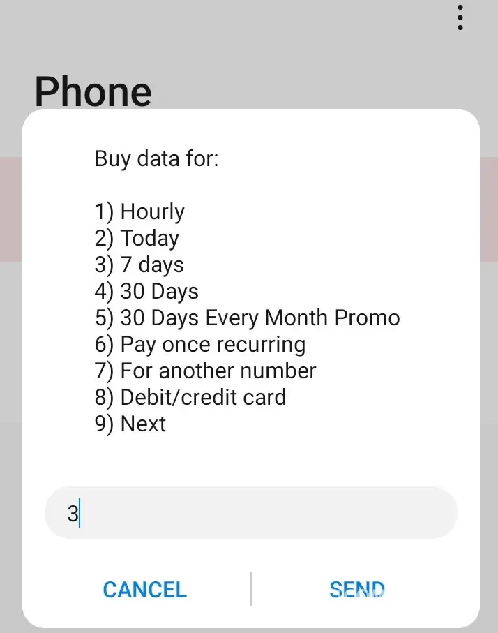 And I selected to purchase data (option 2 - in first attached) and I was taken the next screen and selected option 3 (second attached). From there I was taken to the next screen I selected option 2 (third attached)