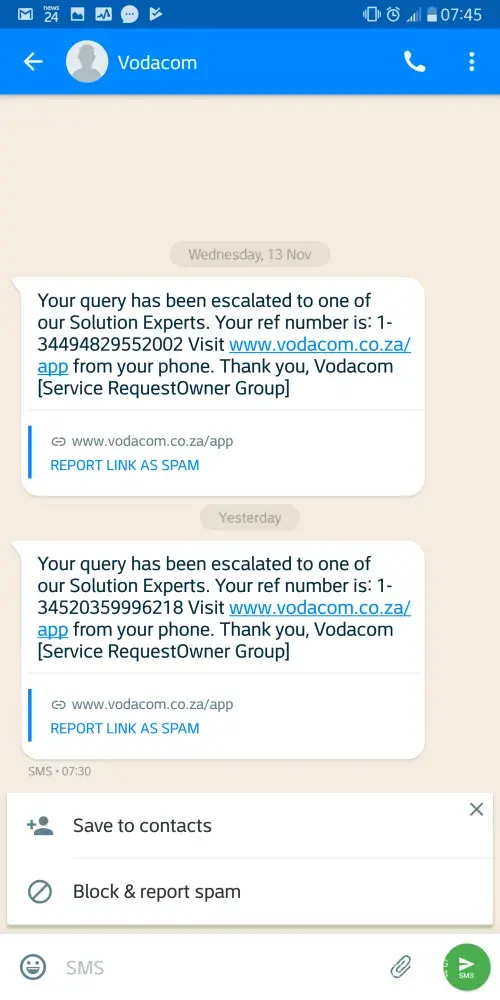 I have numerous reference numbers that is linked to my Vodacom account but here follows a summary with some of them and of my nightmare experience with Vodacom Customer Care: