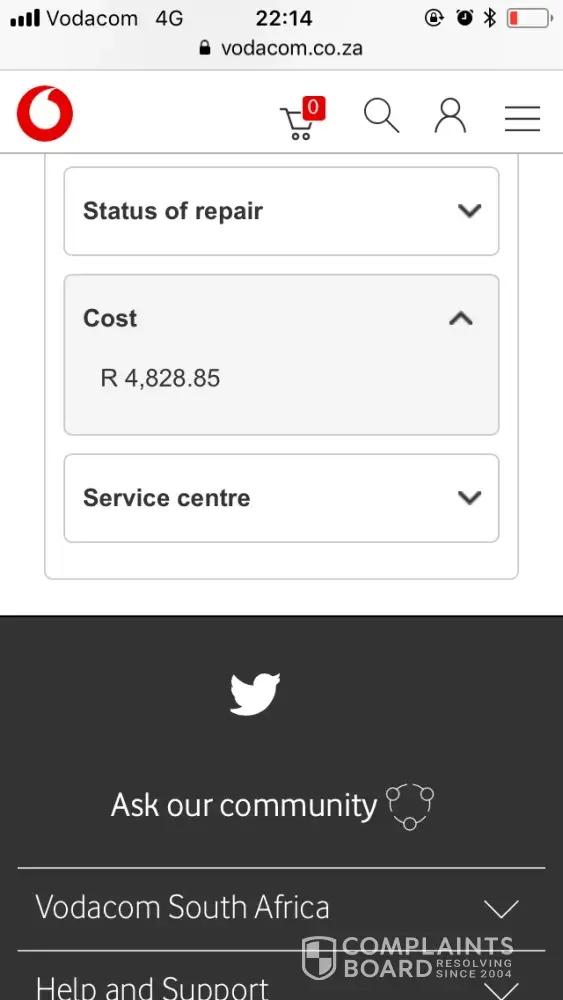 Once again - zero communication from Vodacom. After I traced my job card - which displayed that my screen could be repaired for R4828.85 I had to phone the customer care line and ask why was my insurance claim not processed? This was at about 08:00 pm so I had to wait till the next morning to speak to anyone from Vodacom that could actually assist me. I phoned Insurance and I was advised that the claim was not sent through. I phoned Hazyview and Hussein assured me it was the Nelspruit Repair Centre's fault. I phoned the Nelspruit repairs Centre and was transferred to the person that deals with the claims - who for the entire time didn't answer here phone, it has a voice mail box but you also can't leave a voice mail because the mail box is full.