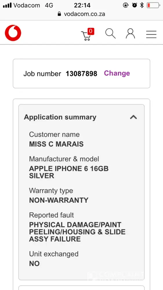 Two weeks later I had still not heard a word from Vodacom and my job no kept stating "in transit" when I tracked it on the website. Only After I had phoned the Hazyview Branch and the manager followed up with the service centre it was discovered that my phone was sent back to Hazyview and lay in a drawer of the consultant that I booked it in with - not even locked away. It was sent back because the IMEI number couldn't be traced without the sim in tray - although it is clearly written on the back and that they require Proof of payment - the Phone was a Vodacom upgrade, I would expect Vodacom to be able to see that... but never the less. This was late in the afternoon just before closing time so I only managed to go to Vodacom the next day.