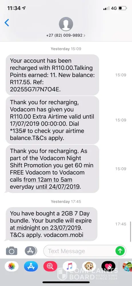 Now I have had just about enough of Vodacom and want this to be sorted out immediately.