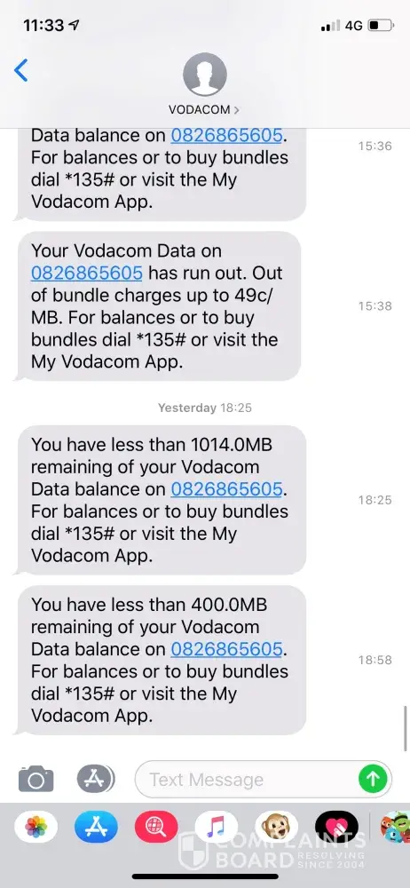 - 21:05, I subsequently called Vodacom to query this and was told that applications that use my mobile data are causing this. I have had the same phone, with the same applications running for the past year, my cellphone behaviour was no different this week. So i do not want to hear any excuses about my phone's applications. This excuse is not good enough for me.