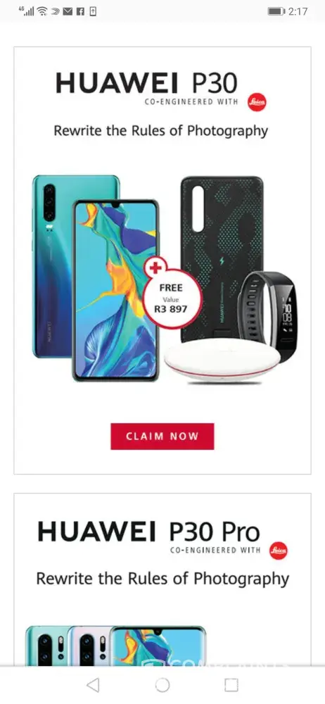 I was discussing phone options with one of the consultants, who on hearing I might be keen on Samsung or the Huawei P30, pointed out the deal that was currently on promo in the store for the Huawei P30. All the advertising boards were up in the store showing the promo. (attached photo of one board I was shown by the consultant to show me all the gifts I would receive with the deal.)