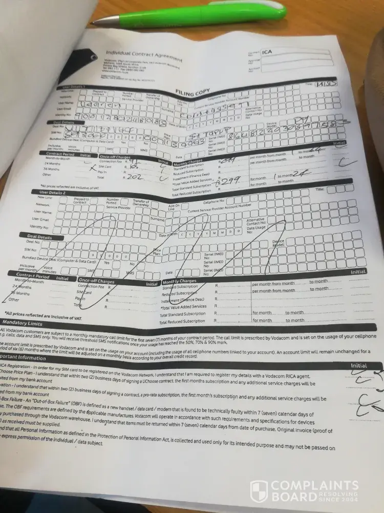 Instead Vodacom incorrectly cancelled my phone contract and added the 20Gigs to incorrect sim [protected].