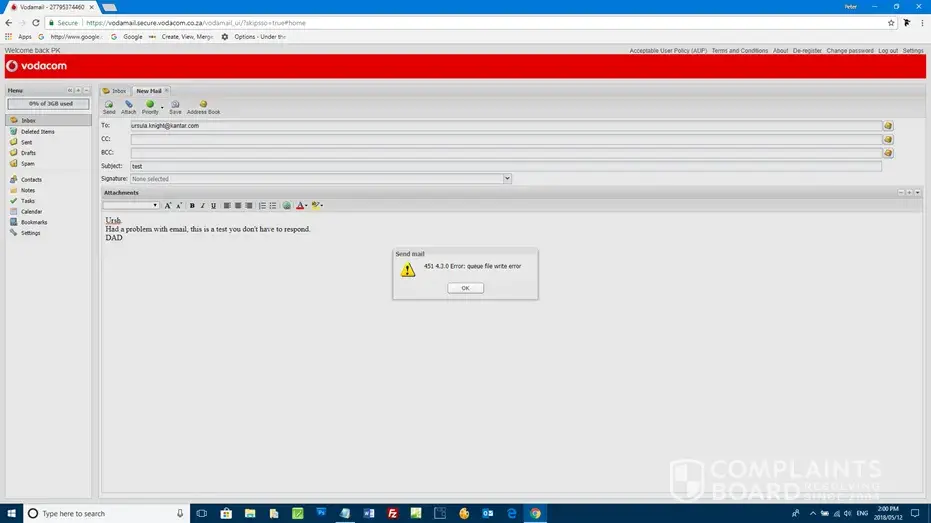Hi. Had a problem with vodacom webmail reported on 12-05-2018. Despite a number of follow ups on this, Vodacom do not respond, this is affecting my business. Your help with this matter will be appreciated.