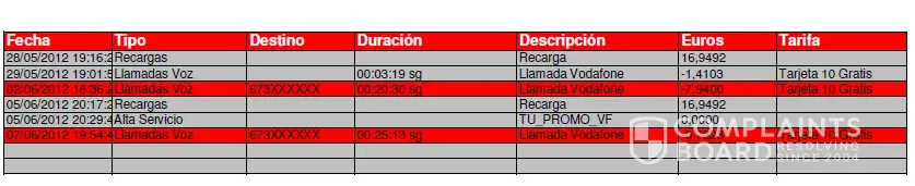 02/06/2012 18:36:24 Llamadas Voz 673XXXXXX 00:20:30 sg Llamada Vodafone -7, 9400 Tarjeta 10 Gratis