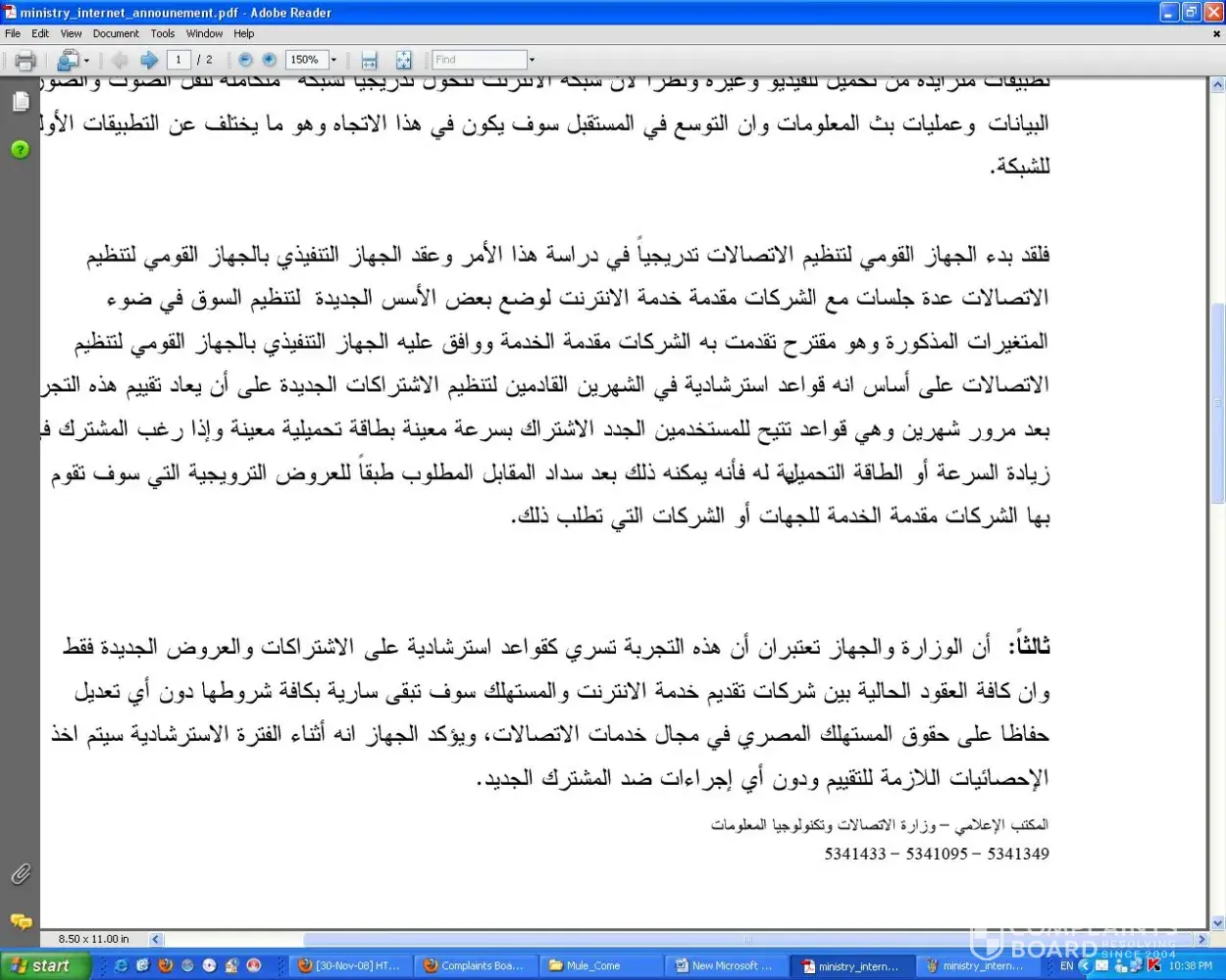 The Next day I found the official statement the was released by the Ministry of communications on 13/8/2009 and I was shocked to find that the official statement had a separate band stating that the new policy is in the experimental phase for the next two months and should be applied to the new subscribers only ((MEAN WHILE THE CURRENT ACCOUNTS STAY WITH NO CHANGES)) concerning the protection of the customer usage rights.
