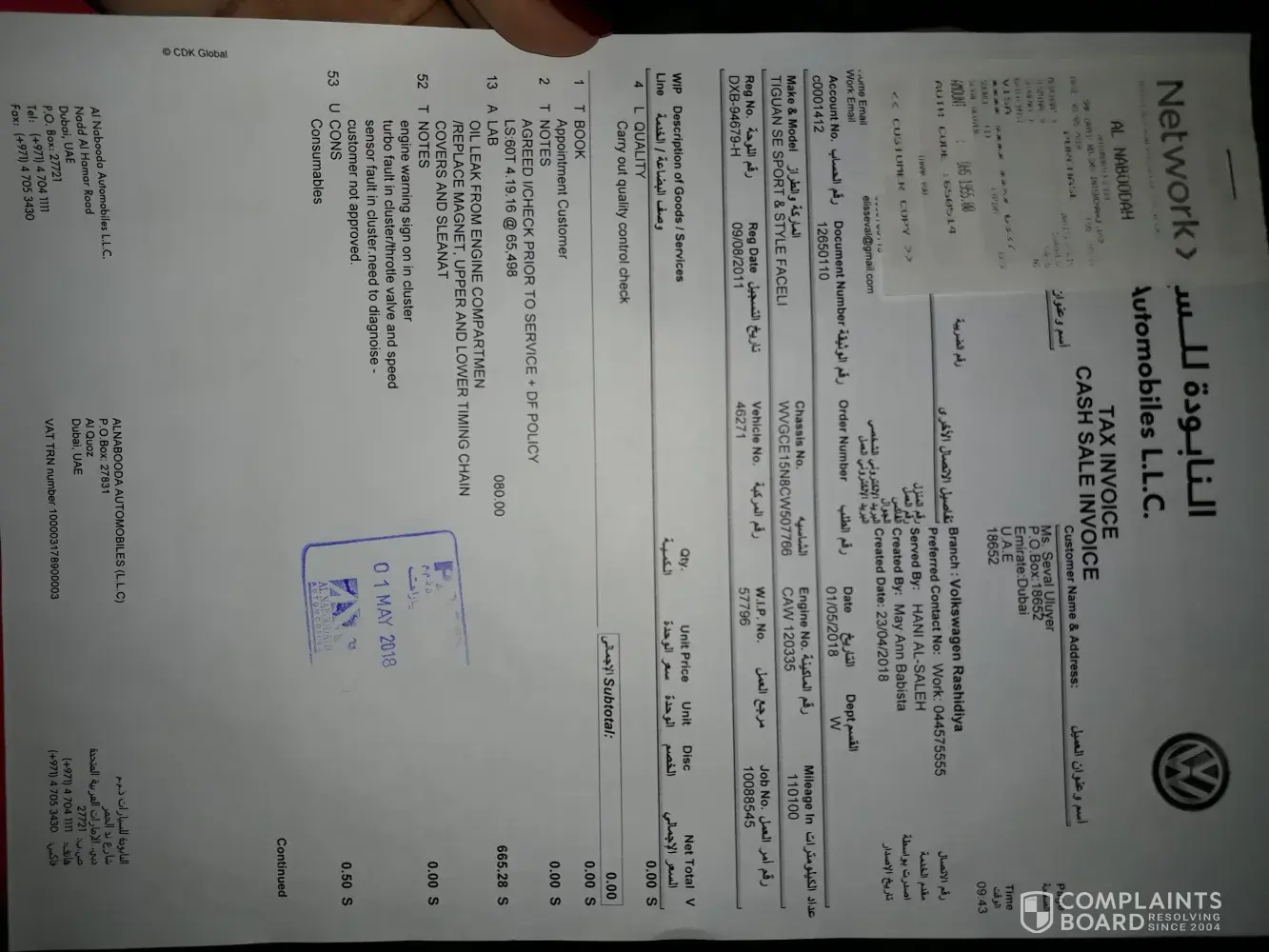 Also please kindly find the pictures which I put as proof. The bill which presented as 3000 AED is done by different mechanic which in volkswagen 40.000 AED! It's unbelievable..