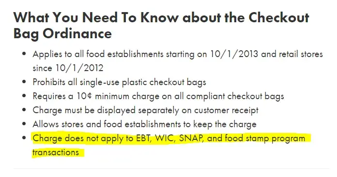 charging customers using ebt for bags