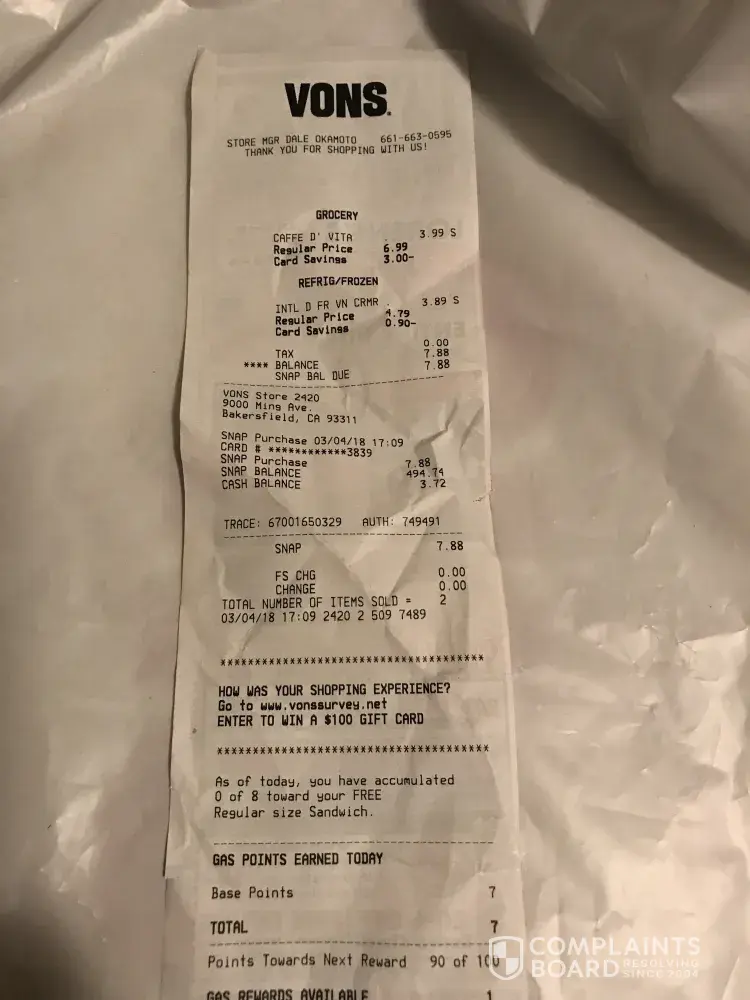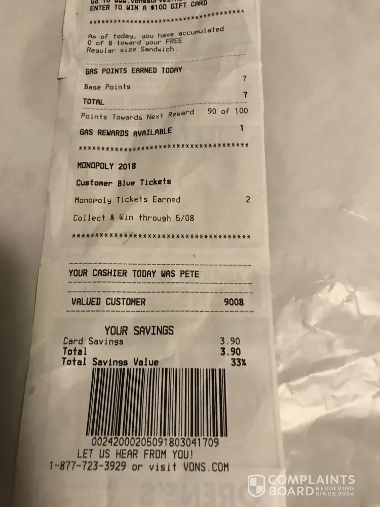 vons should never treat a person that way, the security were very bias, and the cashier was very not trained and should have better judgment she was at wrong here and made things why wrong and because of the way she handled this satiation very poorly and to have your live under threat