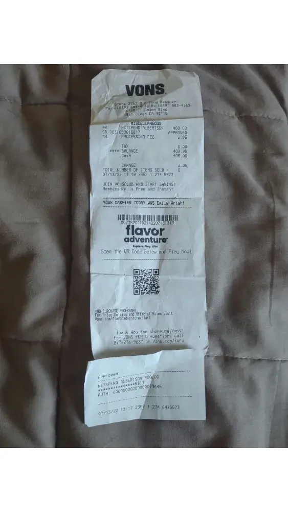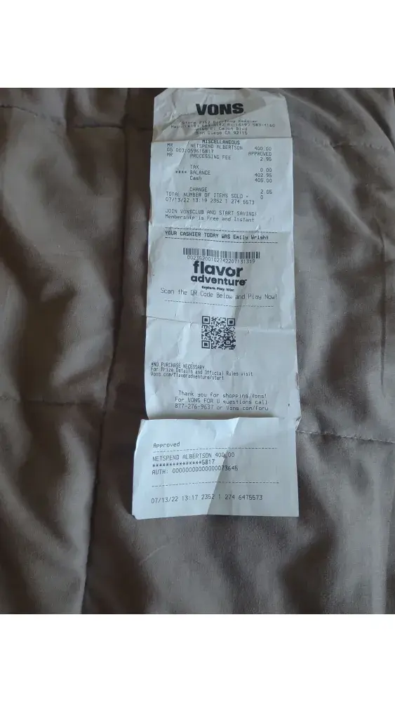 July 13 2022 Vons El cajon blvd San Diego CA I but a prepaid card. I added $400.00 cash... Can't activate it ... NetSpend won't even acknowledge the card via been already activated not in my name... Come to find out this Vons has allot of switching of cards... And card was tampered with. So Vons doesn't want to refund me my money.. I will get my $400 back.