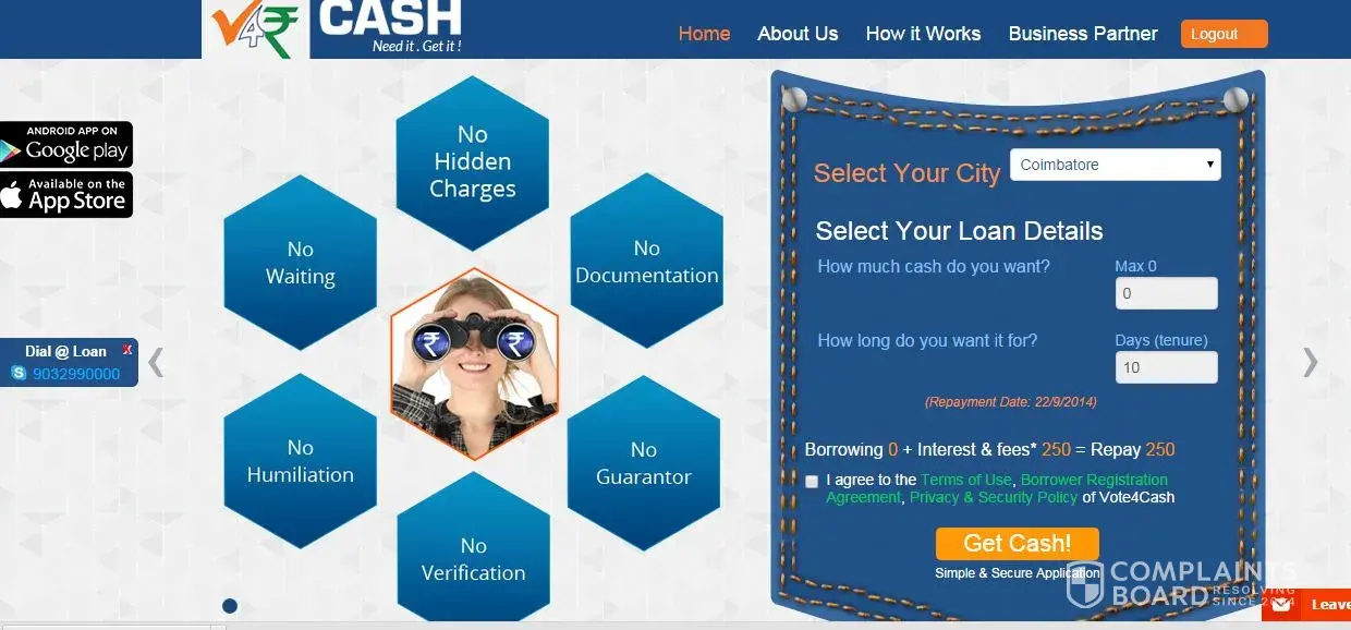 Recently there is a scam in Andhra Pradesh Government called Callmoney sex Racket. This guy is charging interest more than those callmoney lenders. Someone should take action against vote4cash.in