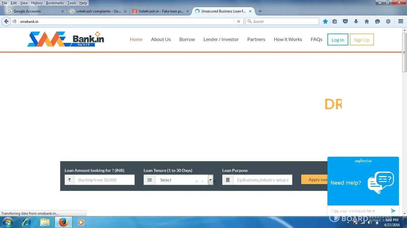 Fake site, scam, hoax BEWARE OF VOTE4CASH.IN, smebank.in, these take 10, 000/rs, after they provide loan 30, 000/rs after 2-weeks they ask 70, 000/rs to pay other wise they tell legal issue its complete fraud, the tell to install vote4cash application in mobile they take all contacts, they produce harassing and make issue legal action, ( for this please complaint to police station they harassing Us and also taking more interest in finance they did not tell any thing, and also complaint to cyber-crime online for this, already so many complaints in police station through cyber crime, , Beware ... Beware ... Beware...