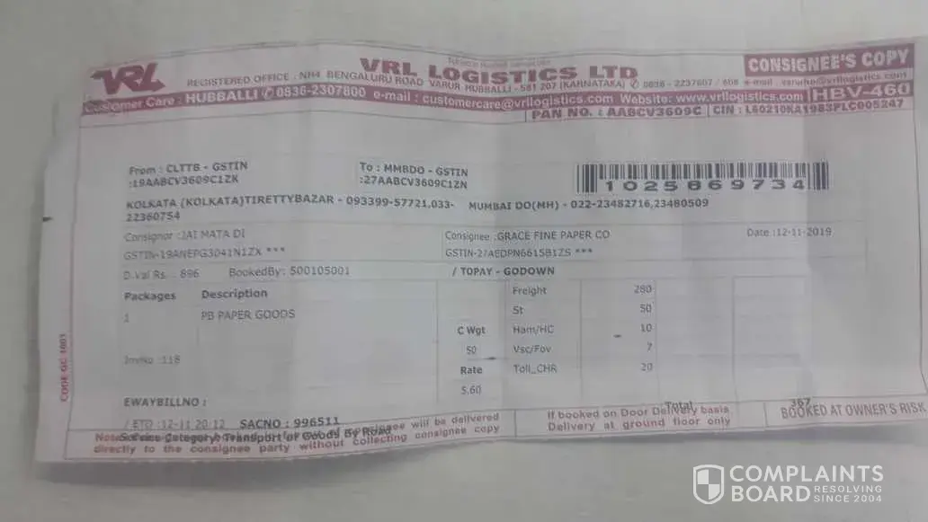 We regularly send our materials all over India thru VRL Kolkata (Agarpara). We always make full payment at the time of despatch. On 20 July 2016 we sent a consignment (Cons no [protected]) to Delhi (godown delv). VRL Delhi told our client that Kolkata VRL has instructed to hold the material, even though it was paid for.