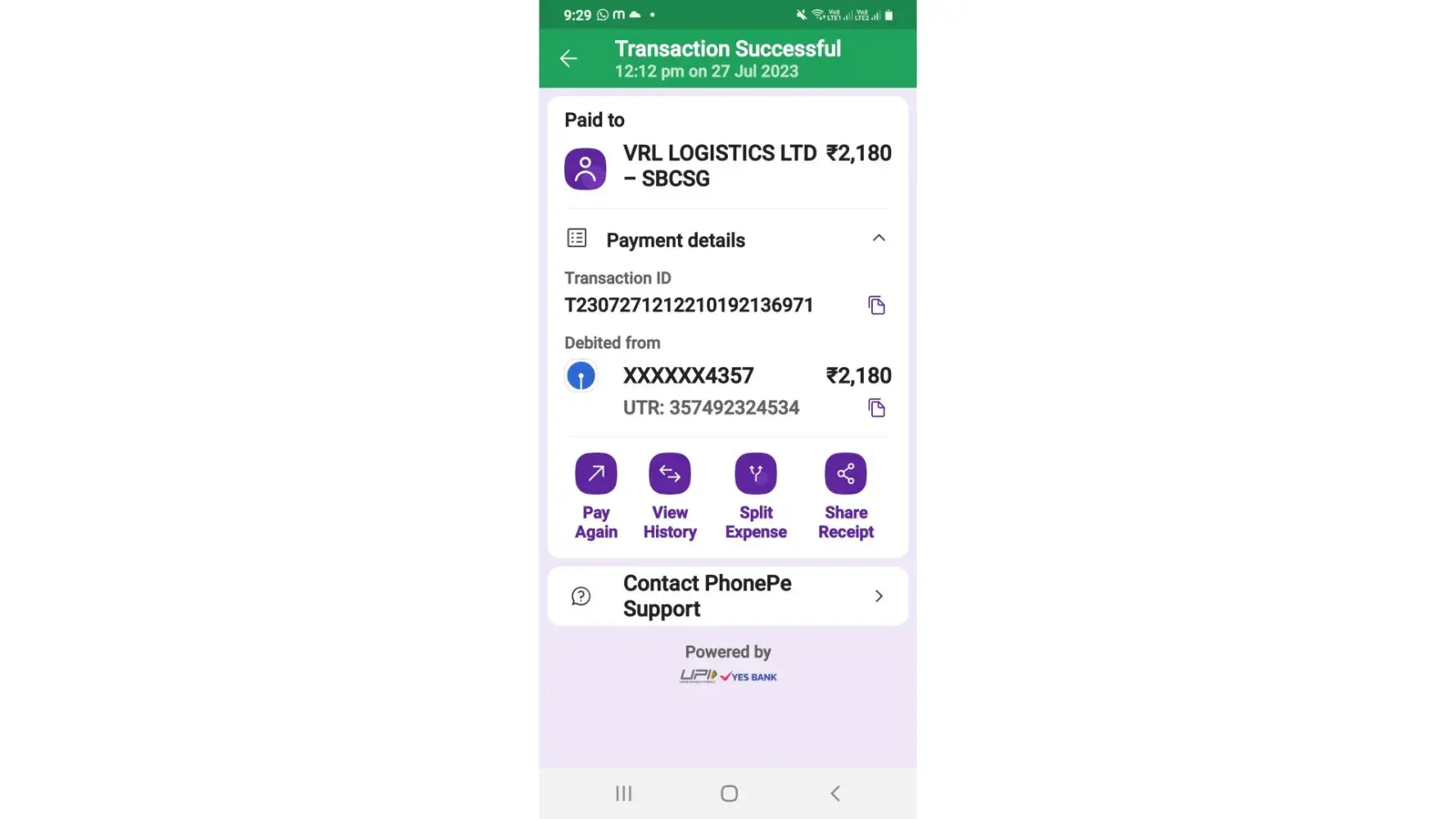I have paid wrong payment of 2180 to sbcsg branch utr no is [protected].dated 27/07/2023