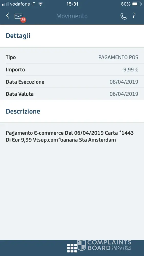 Vorrei avere informazioni sul prelievo ke avete fatto sul mio conto corrente di 29, 90 senza la mia autorizzazione... vorrei avere spiegazioni è in più essere a tutti gli effetti risarcito dei soldi ke vi siete presi... attendo risposte