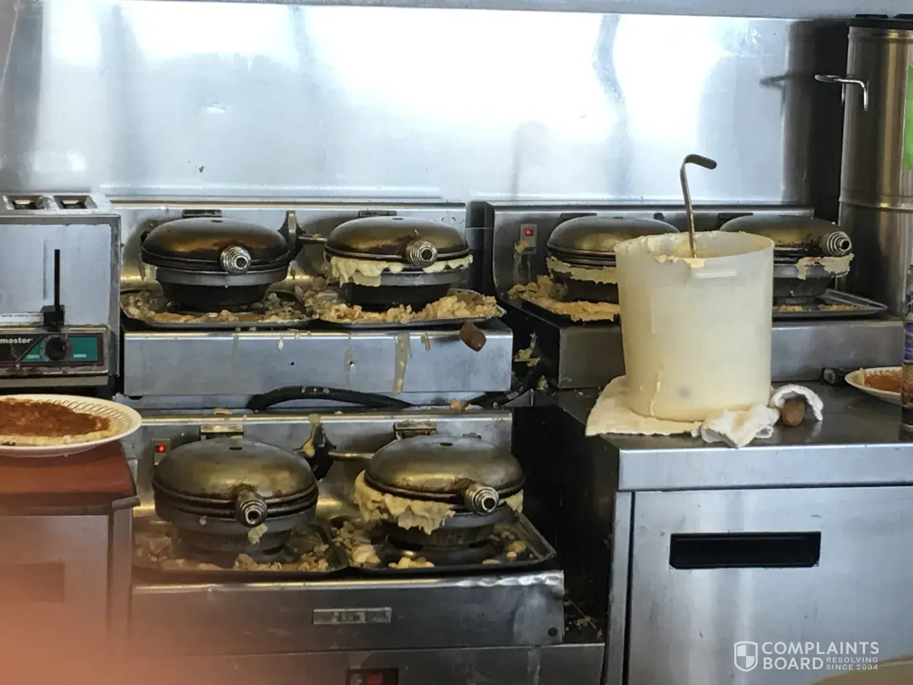 I first walked on and the waffle machines were filthy and looked as if they had not been cleaned in days.