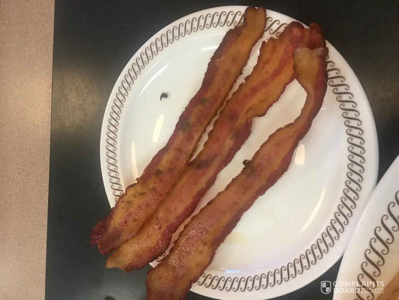 Server said these black spots were the sugar in the bacon. I don't think that is right.