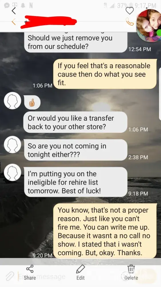 I worked at waffle house also and was fired for suspension of theft...but have the text messages from the district manager stating he was transferring me back to my unit because I was unreliable.