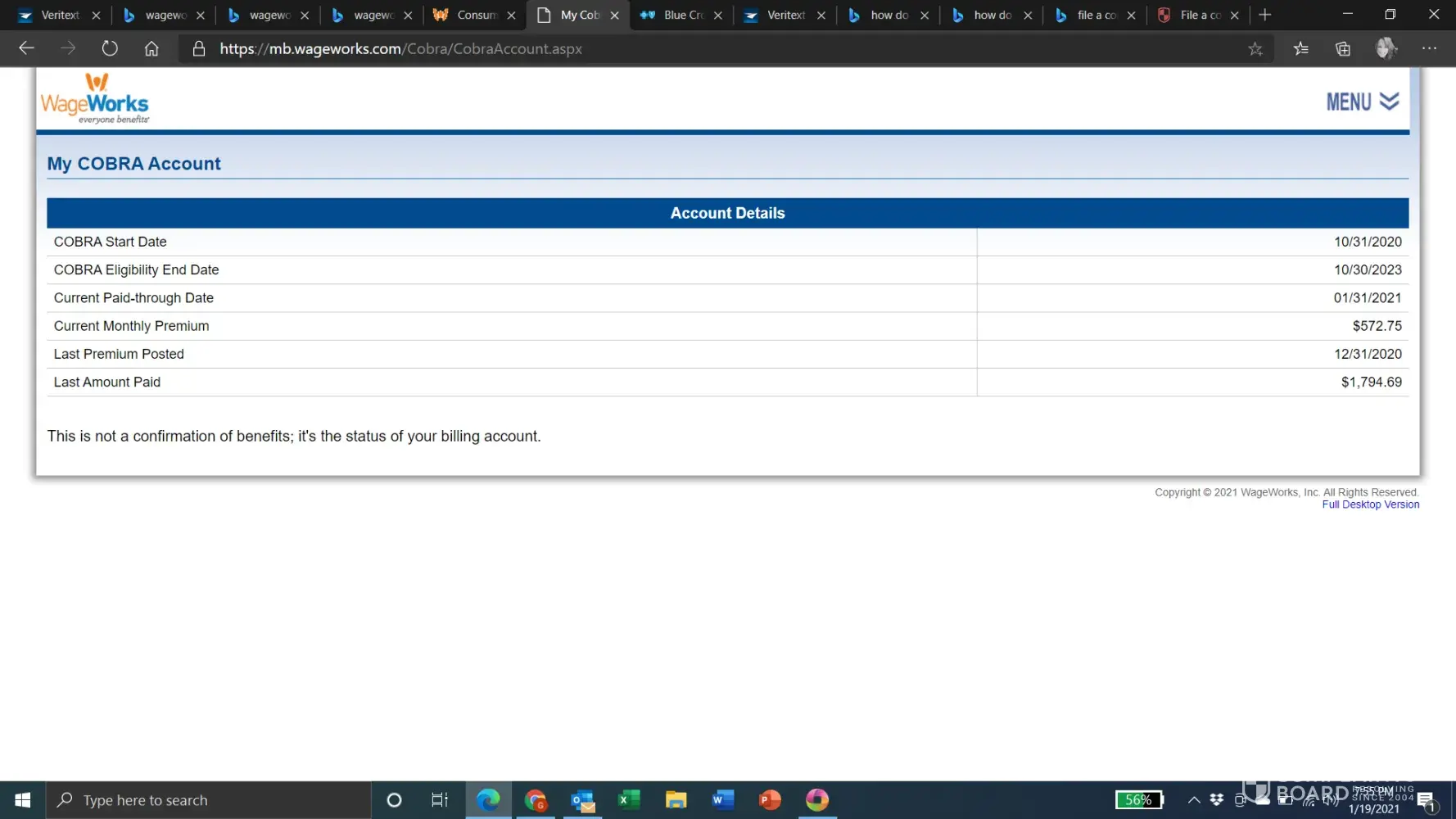 Never... Ever... Ever use wageworks, if you can use covered ca or try to pay for your own plan. I have never dealt with such a dishonest and or maybe incompetent company before. I thought it might have just been a one-off issue with us but apparently not. Due to covid, my husband lost his job of over 20 years and his company sent us information to keep our health, dental and vision plan going with wageworks. I knew from the costs we were offered, it was too good to be true. We started off paying all three plans through wageworks approx. $350 january 2021. I understand it could take some time to get things rolling again, but I knew something was up when come end of january nothing had been reinstated. And given during this whole month my husband calling weekly on the phone for hours with wageworks just for them to give a spiel that it could take weeks but they have already sent urgent message to our insurance providers. February comes and my husband's new job starts our health so seeing we still had no blue cross back we canceled, which was the only easy thing to come of this. We kept our vsp vision and metlife dental going paying around $80 a month. Both vsp and metlife finally showed our plans active starting that month and our dentist offices confirming that as well, so we started getting our usual beginning of the month dental work and my husband finally getting a crown fixed. Come beginning of march I started noticing around $1500 worth of claims were being returned unpaid to our dentists and our dentists confirmed that as well. After hours on the phone with metlife they finally tell us plan was reinstated as of 01/01/2021 but there was no coverage, we would need to get it worked out with wageworks. Again, after hours on the phone they explained to my husband that they still showed him as a current employee of his old job... Funny because adp shows him terminated and why take our money for months. We honestly both do not have the time (with him at a new job) dealing with this clown of a company. Luckily our dentist offices are working with us to pay back the unpaid claims and are now paying four our own plans. But we are chalking this up as a life lesson we hopefully never have to learn again. One thing that has stumped me is that his old job is supposed to be paying part of the plans, so they are losing as well. Please be warned this company is crooked and will give you every reason to take your money and not provide the service they are based around.