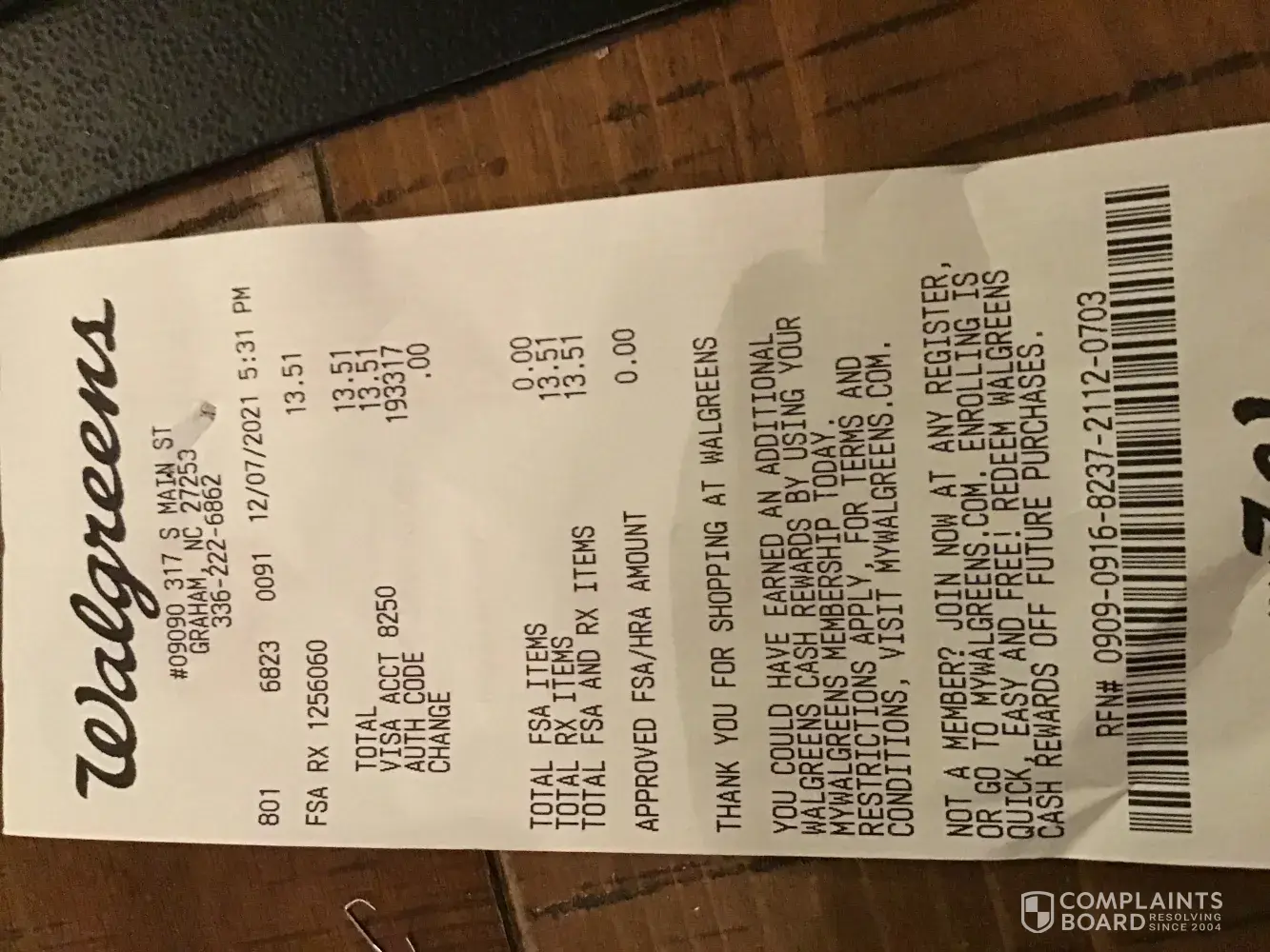 Walgreens entire motive is to try to cheat you in whatever ways they can. You are much better off going to a reputable place in your area not named Walgreens. Your complaints to them are useless as is this entire company. Do complain to your local agencies about them if they are not following the laws including in-store masking rules, and bait-and-switch schemes where they are out of the advertised products at low prices but entice you to buy the higher-priced alternative. The feds should thoroughly investigate Walgreens and shut down those stores not in compliance. Walgreens itself is shutting down many stores because their incompetence is causing the competition to run the company out of business where it belongs.