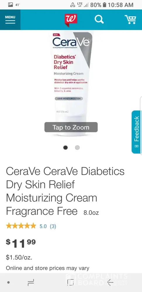Read full complaintcerave diabetic skin relief