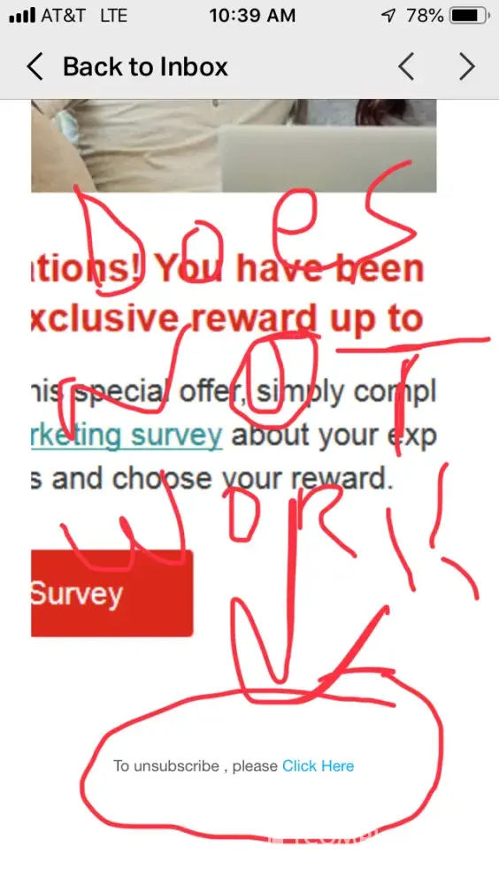 I have received 5 emails for me to fill out a survey for your company. When I go down to unsiscribe and nothing happens.