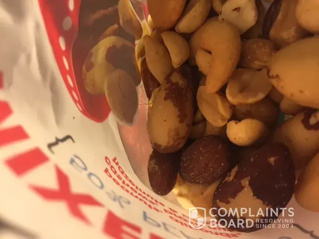 I found a black coarse hair in my bag of mixed nuts and immediately threw it on the ground. I then looked in the bag and saw another thinner black hair. This is completely disgusting and the contamination needs to be investigated asap.