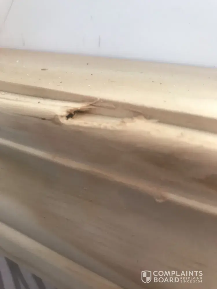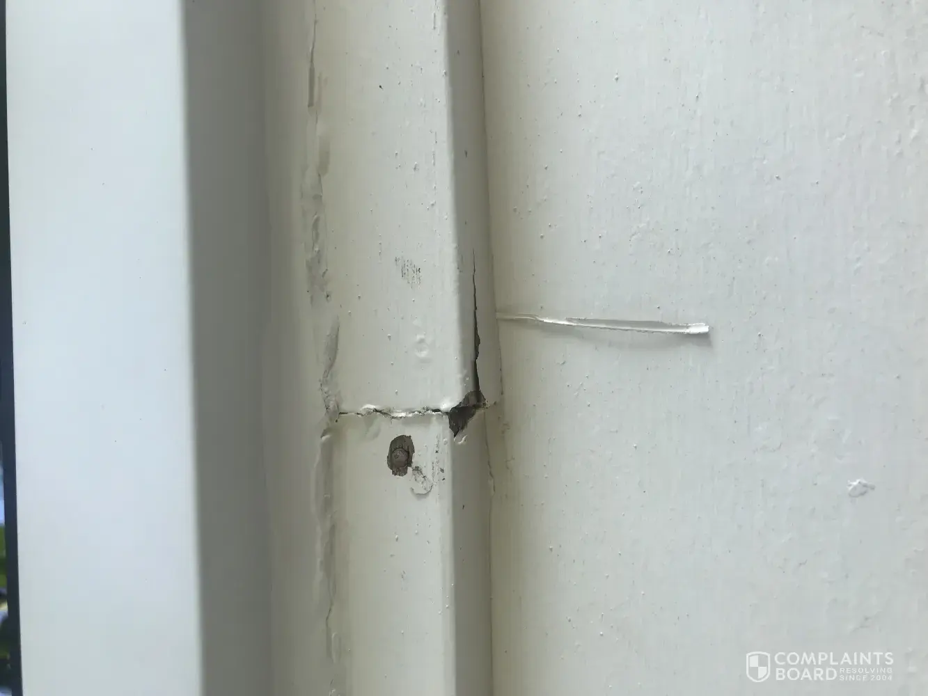 have blue plastic stuck in them. On some windows they had to put two pieces of jams to frame it in because the windows seem too small so they had to build up and fill in the opening to make the windows fit. Some reveals overlap and some don't even cover the obvious mending job they tried to do. The molding has chunks taken out out and the miter corners don't line up. They cracked our siding on the outside as well as chipped the paint off. On top of all this customer service doesn't seem to care to respond to our emails, calls and pictures.