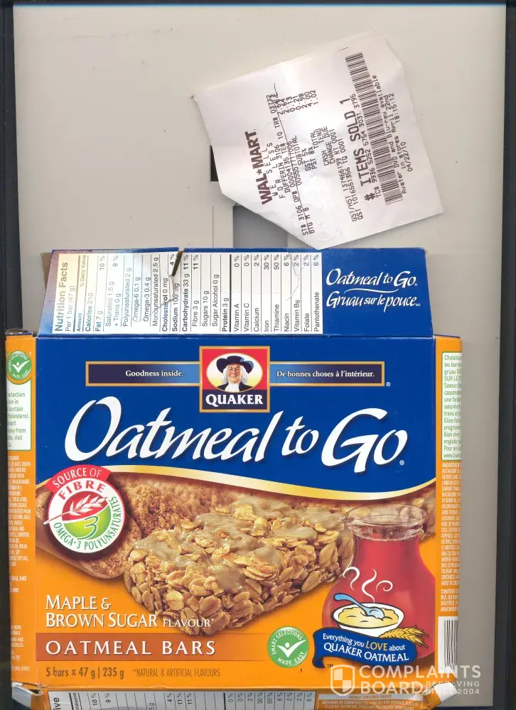 2) "oatmeal to go" - "maple & brown sugar flavour" - oatmeal-bars was marked on the shelf as "otg m b s " for $2.