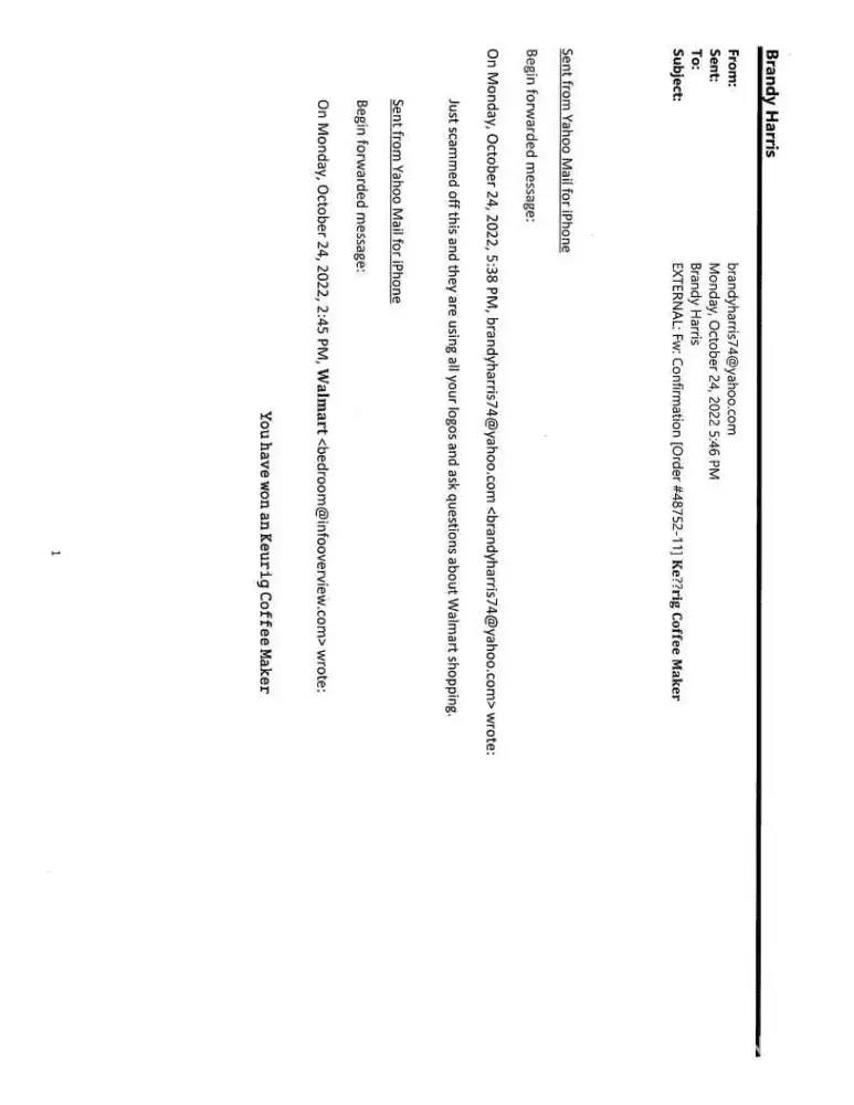 I received and email from On Monday, October 24, 2022, 2:45 PM, ð–ðšð¥ð¦ðšð«ð wrote:
