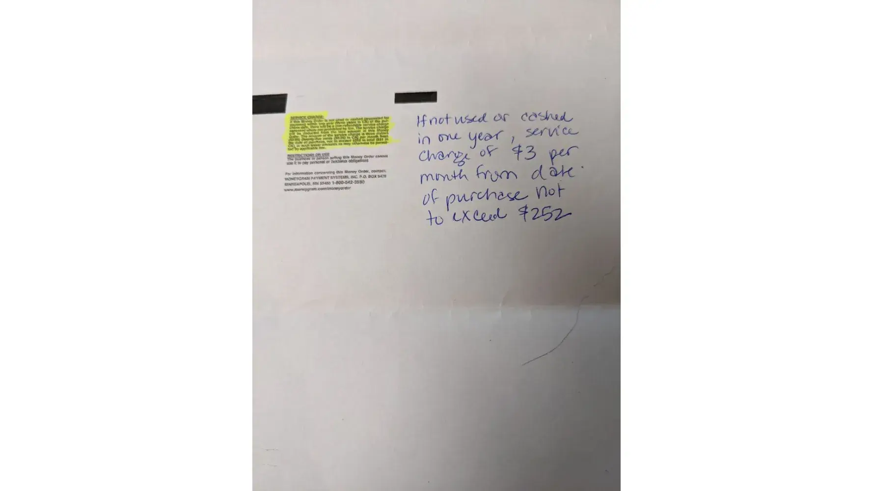 Refusal to cash money order purchased at local store