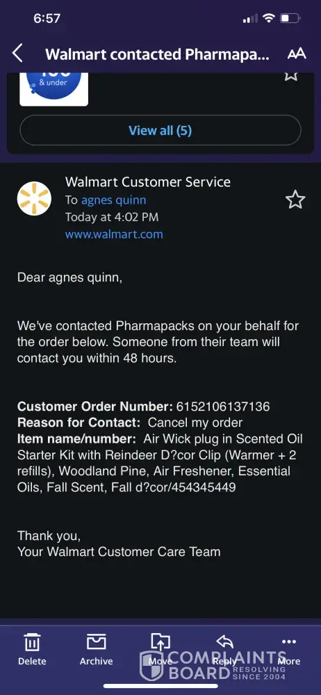 - informed no escalation had actually taken place. Indicated Walmart would escalate and to wait 48 hours.