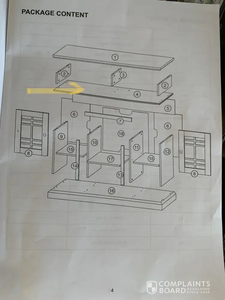 Nov. 12, 2021 - completed online return procedure indicated furniture shipment was missing an essential part.