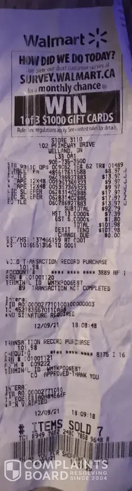 Few days went by so I decided to check tracking progress and only one product showed tracking.concerned I contacted customer service and they gave me a tracking number. Found out it was only a shipping label. Which no longer exist. Every day I contact Walmart and get same run around. No real acknowledgement and no refund. Did some digging.found out this address for company has many fraudulent companies listed to it. Have the multiple names the owner goes by and many phone numbers. Made formal complaint with BBB and emailed CEO of Walmart Canada. I am now looking to make formal complaint with RCMP fraud investigation and take Walmart to small claims court. Absolutely disgraceful that a billion dollar company feels it's in the right to steal money from customers on a regular basis from what I'm reading online.